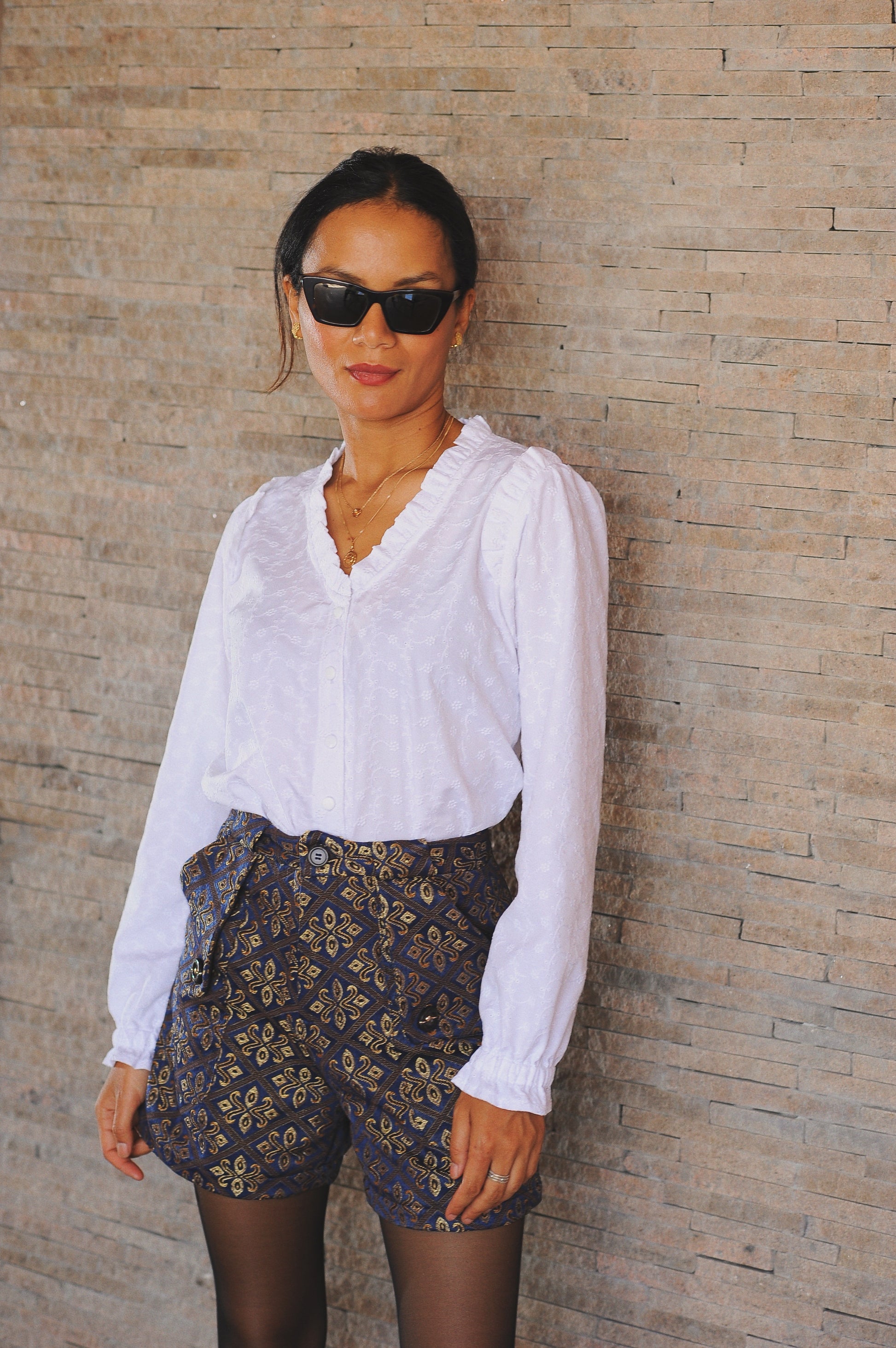 Un short élégant et festif, idéal pour illuminer vos soirées.