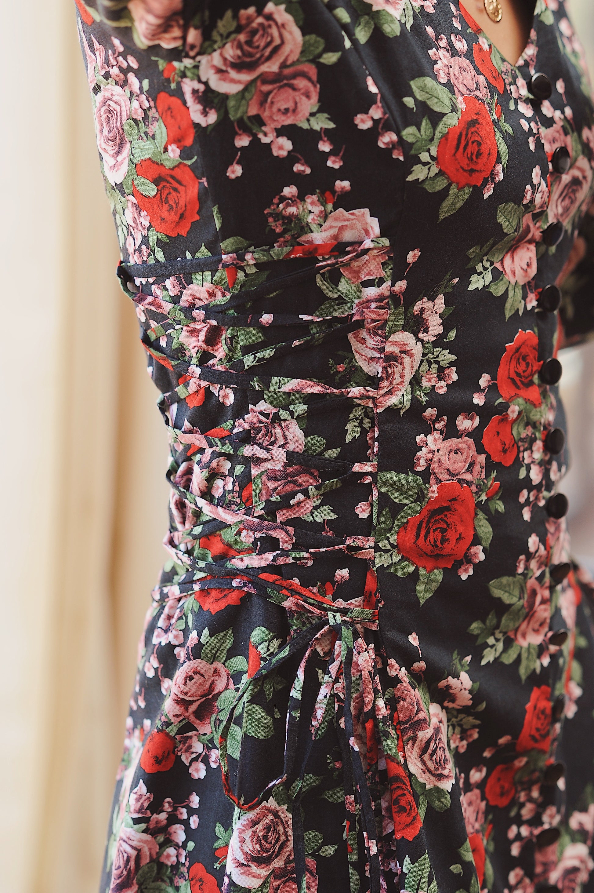 Nœuds corset sur les côtés, détail élégant qui structure la robe