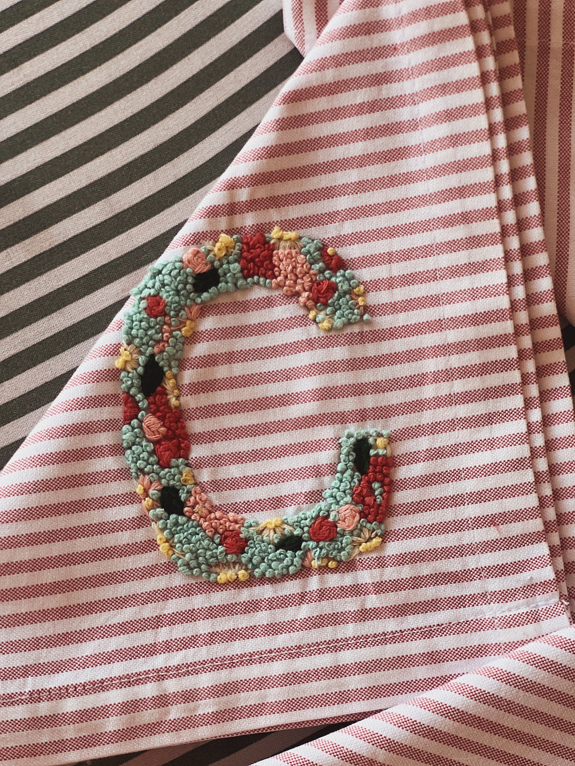 Personnalisation : Lettre au choix (initiale brodée à la main)